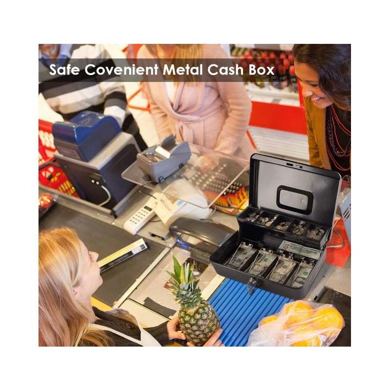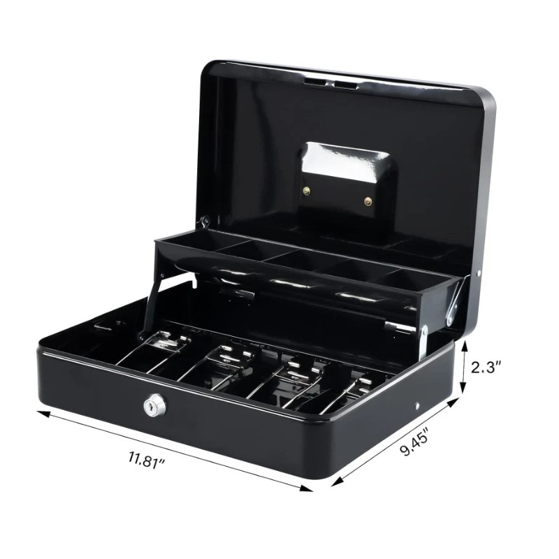 KYODOLED Locking Cash Box with Lock,Money Box with Cash Tray,Lock Safe Box with Key,Money Saving Organizer,11.81Lx 9.45Wx 3.54H Inches,Black XL Large