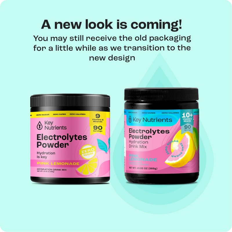 - Fresh Pink Lemonade - Staying hydrated goes beyond just drinking water, and a delicious pink lemonade electrolyte powder drink is the key. Free of calories, carbs, and sugar, this electrolytes powder makes hydrating refreshing and guilt-free!