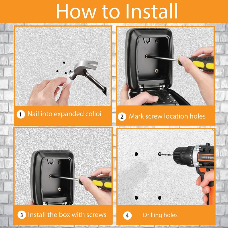 - 🏡 EASY INSTALLATION: Our lockbox for keys outdoors ensures a hassle-free setup with no complex tools needed. Our key lock comes with mounting hardware and instructions for easy installation. Perfect for large key-safe installations, the key box for outside saves you time and effort while ensuring your keys are securely stored outdoors.