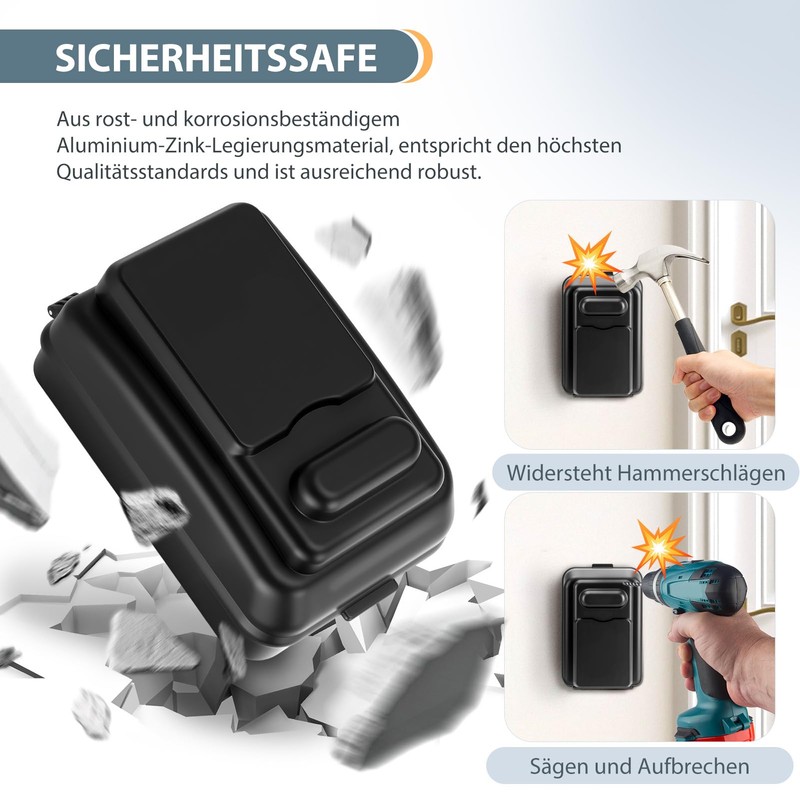 - Robust and durable: made of a high-strength zinc-aluminium alloy, this outdoor key cabinet provides improved protection for wall-mounted key boxes and effectively resists hammer blows, saws and break-up attempts. The waterproof cover protects the key box from the elements and prevents rust or corrosion.