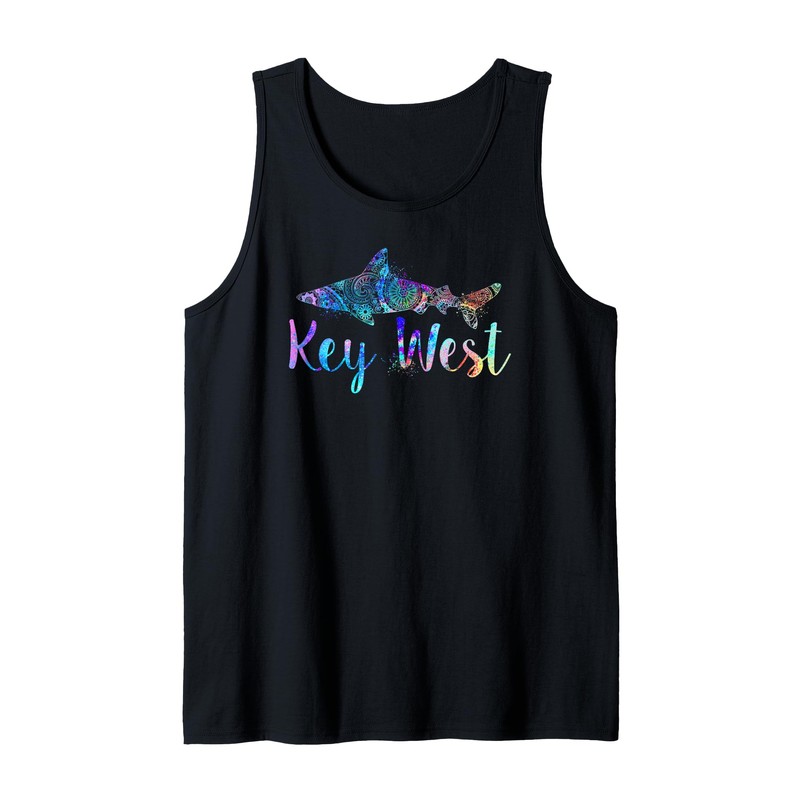 - Shark Key West design for men & women who love diving snorkeling ocean fishing says KEY WEST FLORIDA with mandala style shark graphic in retro vintage watercolor splatter, travel lover novelty gift for all who love the beach swimming with sharks dolphins
