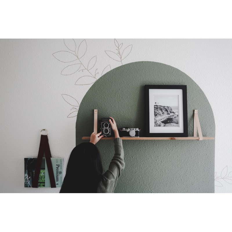 KEYAIIRA - Leather Shelf Straps Custom Size hanging wall bracket holding floa...