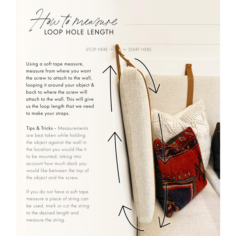 This listing is for a custom-made wall strap- to the length of your choosing! Our durable leather straps can be used in a variety of ways including but not limited to: Cushion straps, bench straps, shelf straps, headboards, banquet straps etc.