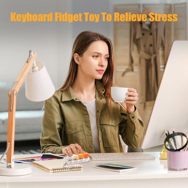 3, You can change the switches and keycaps to your liking, giving you the fun of a DIY clicking fidget toy. This keyboard fidget keychain is a thoughtful gift for anyone who loves mechanical keyboard or needs a fun way to relieve stress. You can choose keyboard fidget toy as a birthday gift or Christmas gift