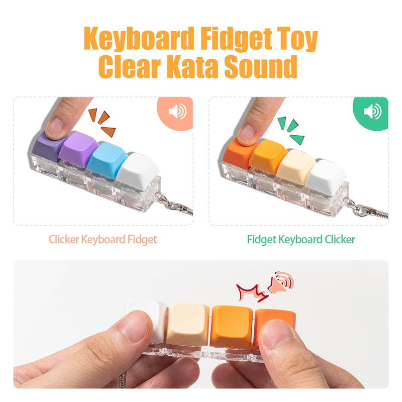 - Mintcap Package:You will receive 2 pcs of keyboard fidget toy with beautiful colors, sufficient quantity to meet your daily use and replacement needs. When you press the clicker fidget toy, it will make a crisp clicking sound without being too loud. Keyboard fidget keychain provides a satisfying mechanical keyboard tactile experience while exercising your fingers, making keyboard clicker fidget an ideal fidget clicker for adults