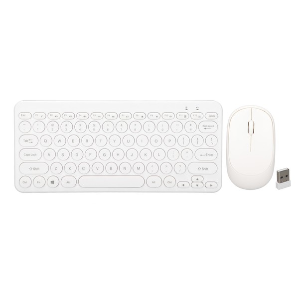 Keyboard Mouse Combo 2.4G Wireless Round Keycaps Ergonomic Design Silent Mouse USB Receiver Keyboard and Mouse White