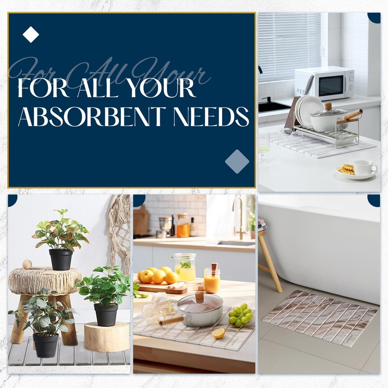 - MULTIPURPOSE USE: Our stone drying mat is perfectly sized to match most dish racks, and can be used to dry fruits, vegetables, dishes, cups. It can also be used as an insulating mat, stone bath mat, plant tray, pet feeding mat, and its fashionable appearance blends perfectly with various styles of homes