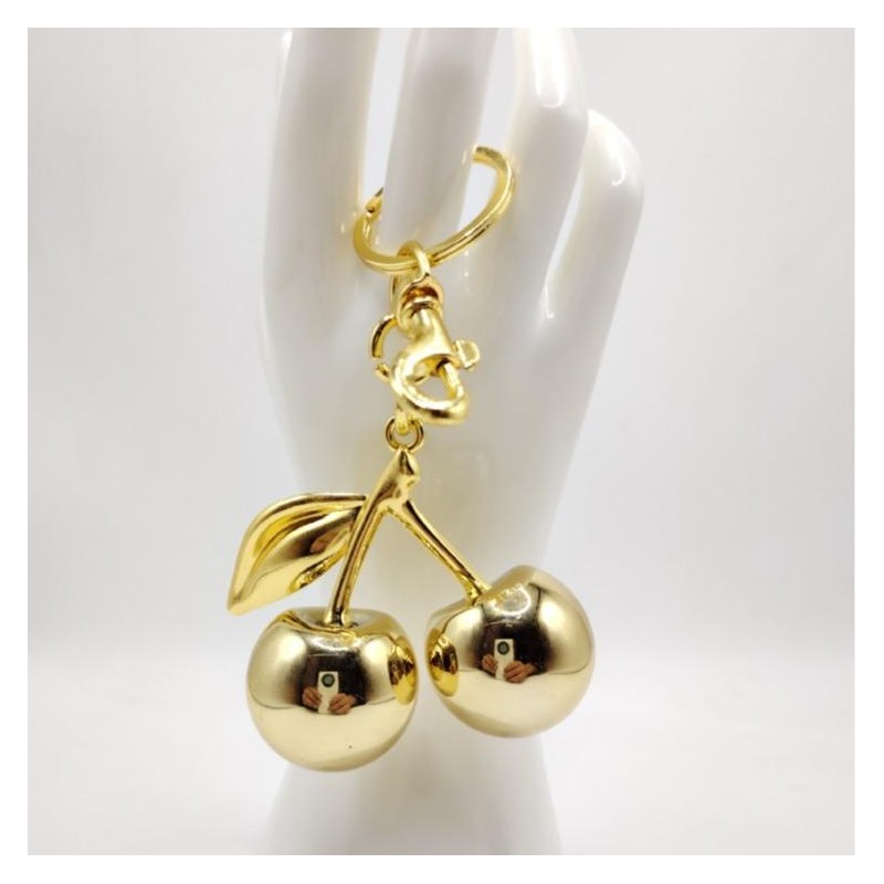 Keychain Cherry Bag Charms Purse,Key Chains Women Cute - Car keyrings leather handbags,Adorable Add - ons for Your Essentials:_Gold_2 Pack