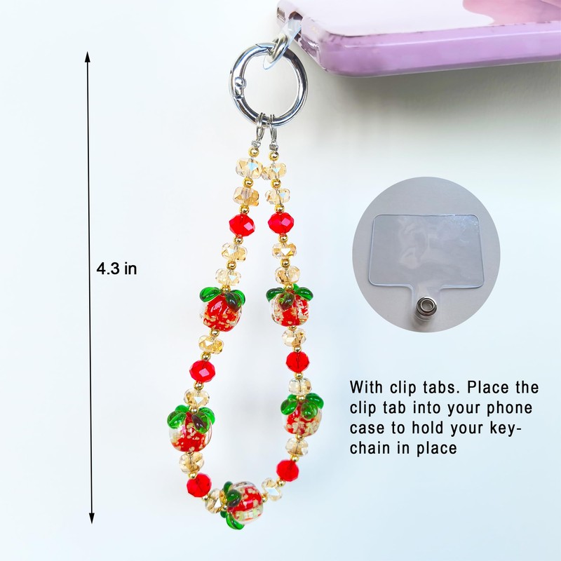 - DESIGN FEATURES: Handcrafted crystal beaded keychain featuring red and gold crystals with decorative green-leafed apple charms throughout the strand