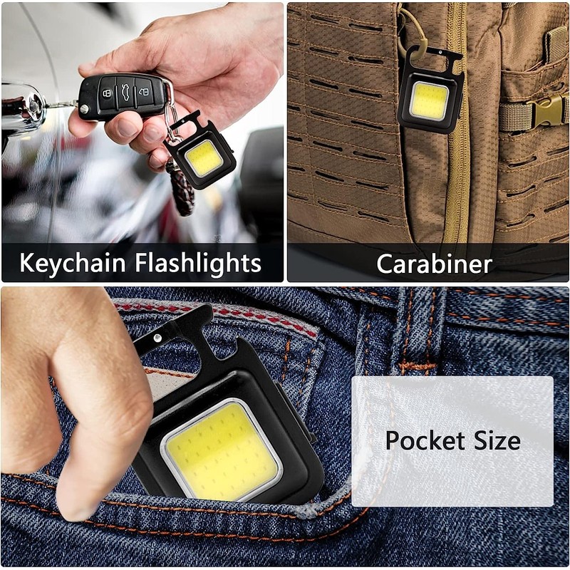 - 【Widely Used】As a keyring light, it can be easily connected to the keyring or bag, and can also be used for emergency inspection of vehicles and lighting of items in the vehicle. The magnetic sticker on the back can be pasted on the iron metal surface, Or it's also a good bottle opener. You can use it in camping, finding things, repairing, emergency lighting, etc.