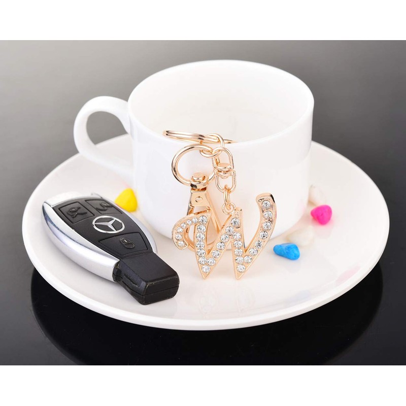 Keychain for Women AlphaAcc Purse Charms for Handbags Crystal Alphabet Initial Letter Pendant with Key Ring