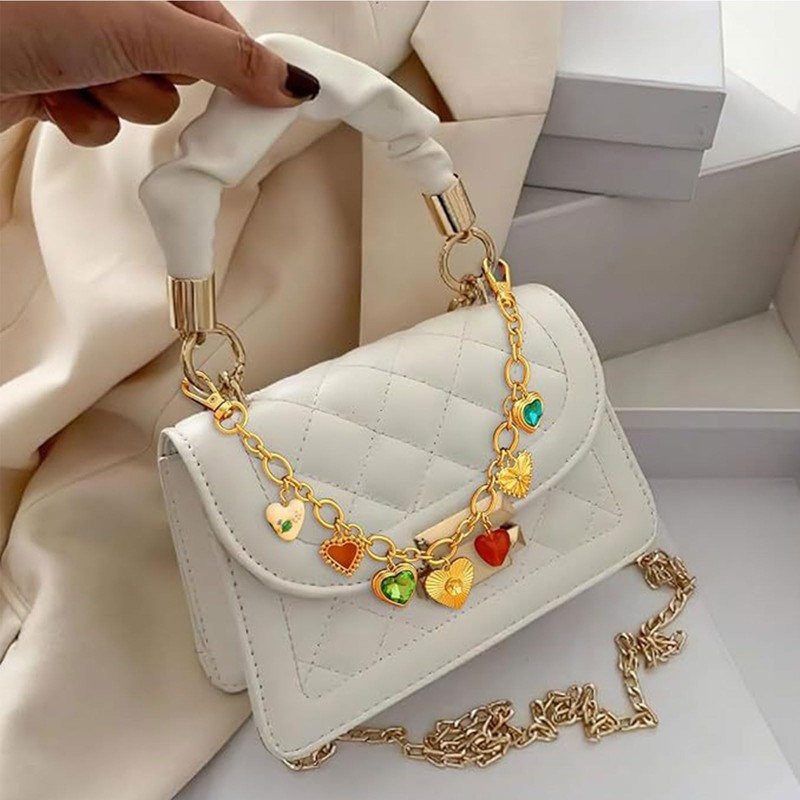 Keychain for Women Trendy Gold Bag Purse Heart Charms Dainty Handbag Strap Key Chain Handle Bags Accessories, Gold, Large