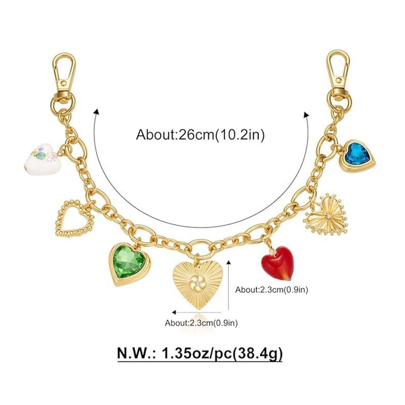 - 1. Stylish Design This Keychain for Women features a trendy golden color as the main tone, complemented by delicate heart - shaped charms and other decorative elements. Its style is fashionable and full of romantic charm. The diverse heart - shaped designs, some inlaid with colorful gemstones and others with unique textures, add highlights to the overall look. Whether paired with a simple handbag or an elaborate one, it can enhance the sense of fashion and showcase personal charm.
