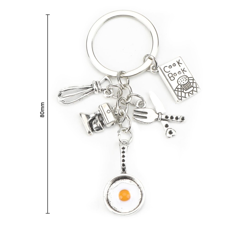 Keychain with Cooking Book, Egg Pan, Whisk Charms, Good Friend Birthday and Thank You Gifts for Women, Girlfriend, Friend, Unique Travel Accessories, Inspirational Keyring