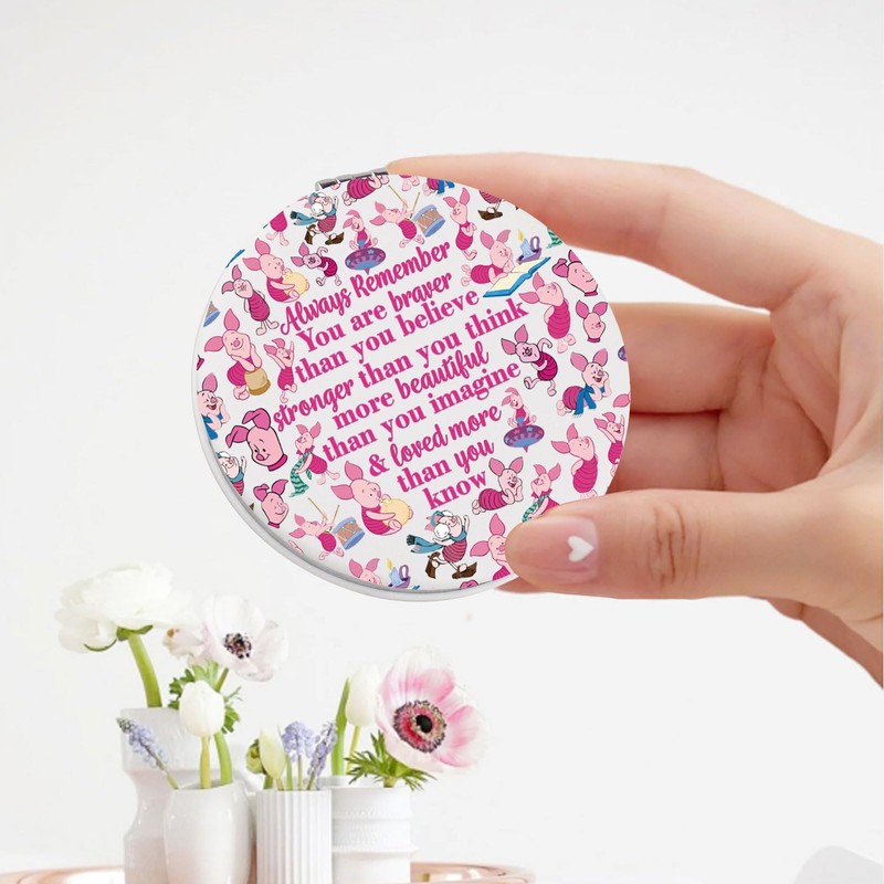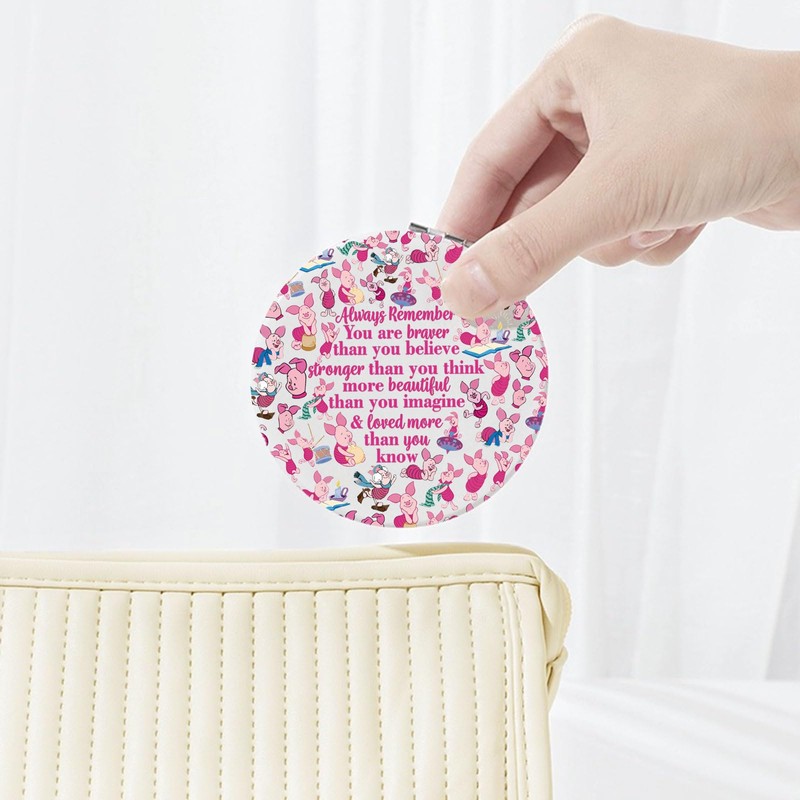 KEYCHIN Espejo de bolsillo con lechón para fanáticos de lechones Regalos You are Braver Stronger Smarter Than You Think Piglet Espejo compacto para mujeres y niñas (Piglet-blanco)