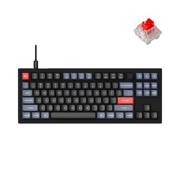Keychron V3 Wired Custom Mechanical Keyboard Knob Version, TKL QMK/VIA Programmable Macro with Hot-swappable Keychron K Pro Red Switch Compatible with Mac Windows Linux Carbon Black (Non-Transparent)
