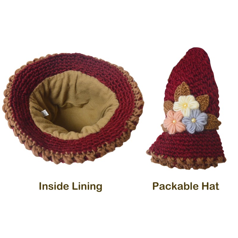 KEYDUACU French Thicken Women's Flowers Knitted-Woolen-Hat Fashion Beanie-Hat Lady Crochet-Bucekt-Hat for Winter (AU, Alpha, One Size, Medium, Burgundy)