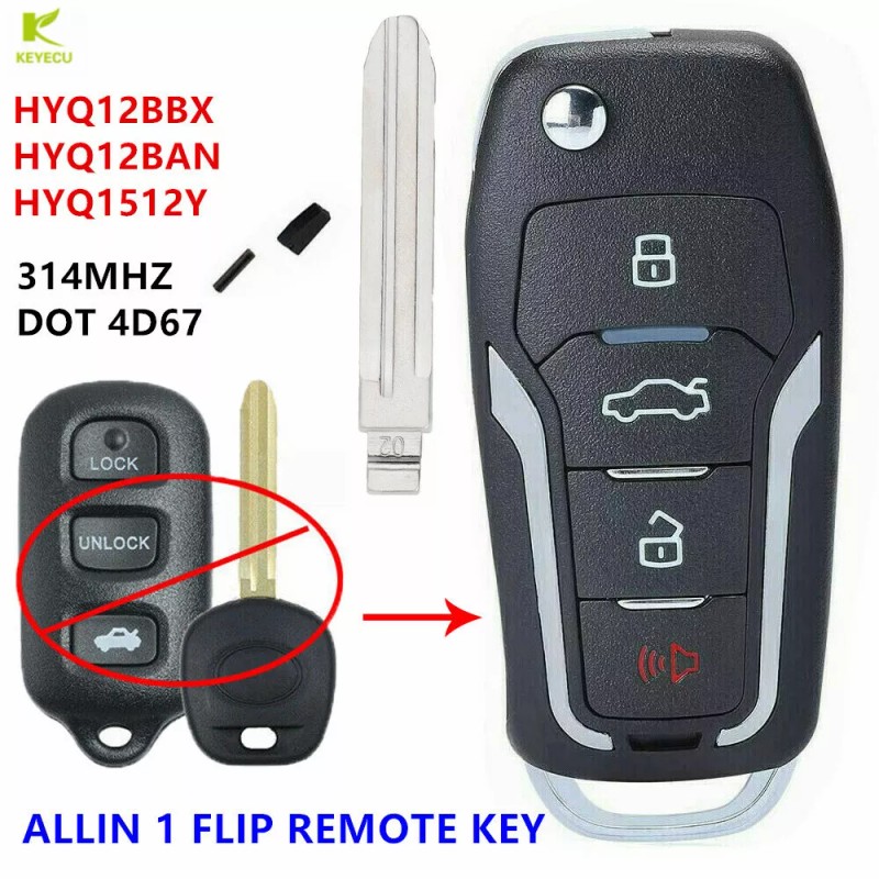 keyecu Upgraded Flip Key Remote 4Button for Toyota 4-Runner 2003-2009 HYQ12BBX DOT CHIP