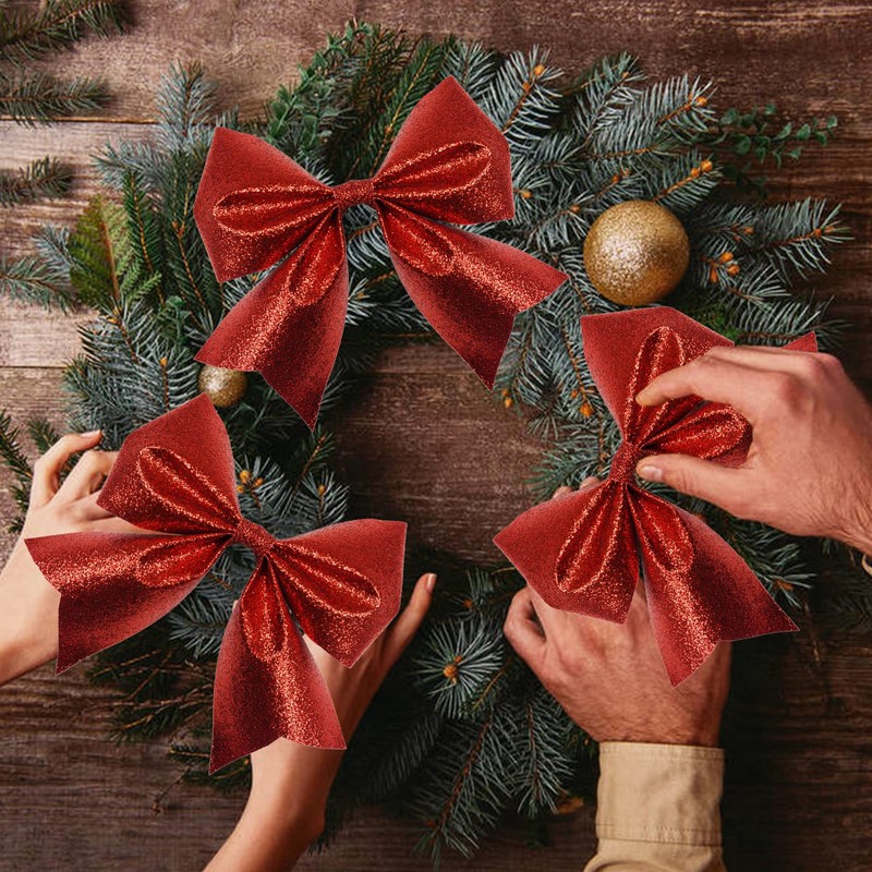 - Widely Use: The glittering red Christmas tree bows are perfect for decorating Christmas trees, Christmas wreaths, doors, windows, staircase handrails, etc
