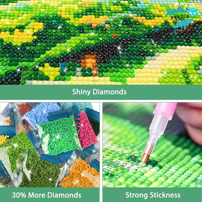 - PREMIUM QUALITY CANVAS: Our 5d diamond art kits are made of tough, waterproof canvas, ordinary creasing or soaking in water will not affect the original state of the canvas, meanwhile, the glue on the canvas is highly adhesive, so that the diamonds can be firmly stuck to it without falling off!