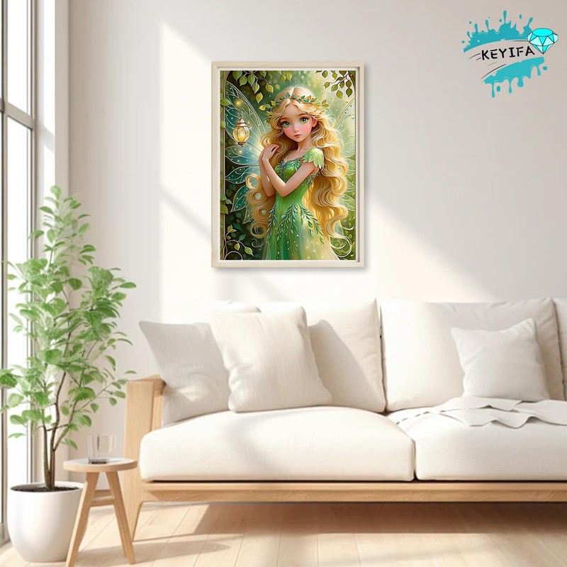 KEYIFA Diamond Painting Kits for Adults, Fairy 5D Diamond Art for Beginner, Round Full Drill Diamond Dots Green Fairy Crystal Painting with Diamonds, DIY Gems Art Craft for Wall Decor Gift 30x40cm