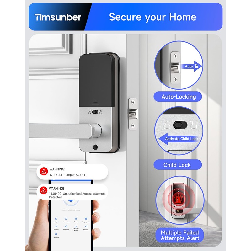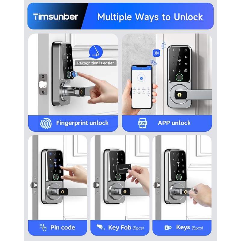 • 7-In-1 Access Options:Unlock your door with 7 different methods to suit your needs: fingerprint, keypad entry, smartphone app, key fob, mechanical key, WiFi remote control (gateway required), and voice commands via Alexa or Google Assistant. Whether you prefer biometrics, passcodes, or remote access, this lock provides the ultimate flexibility for modern living.