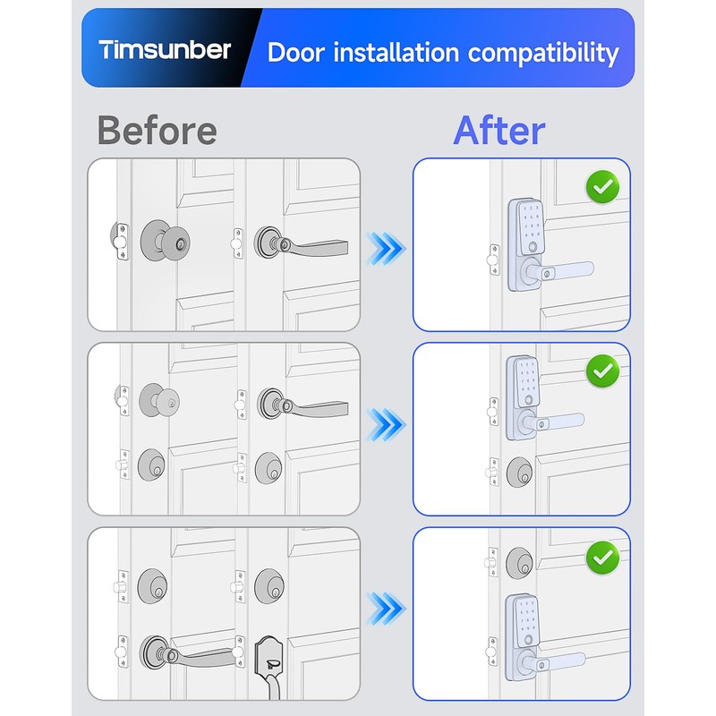 • Effortless Installation in Under 20 Minutes:Installing your smart lock has never been easier! All necessary hardware is included, along with an adjustable latch that fits 2-3/8" or 2-3/4" backsets. Compatible with standard 2-1/8" (54mm) door holes (not suitable for 38mm door holes), this lock is designed to fit most left- and right-handed doors without any adjustments. You can install it in less than 20 minutes using just a screwdriver—no professional help needed.
