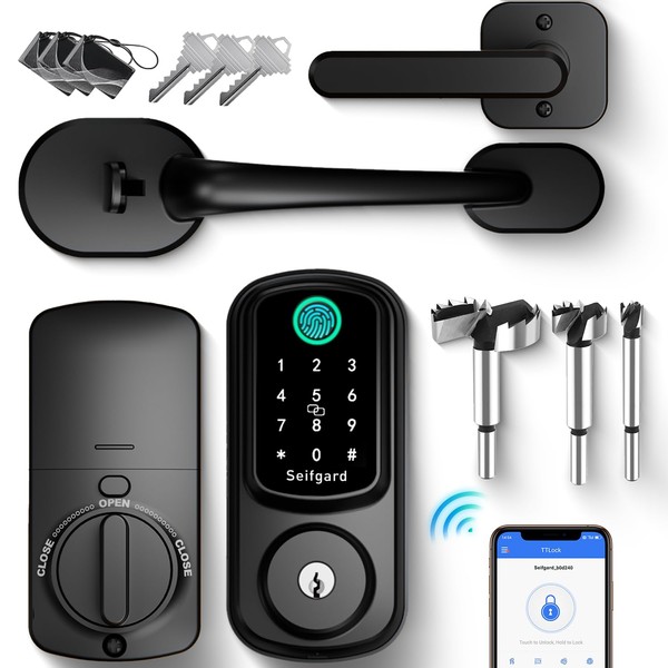 - 【Self-Learning Fingerprint Door Lock】:Keyless entry door lock deadbolt with handle set features a built-in rapid and secure fingerprint sensor, utilizing next-generation machine learning fingerprint access technology. Fingerprint door lock recognition gets more precise with every touch, Unlocking in under 0.3 seconds, outpaces traditional key fumbling, ensuring your life is both safer and more convenient.