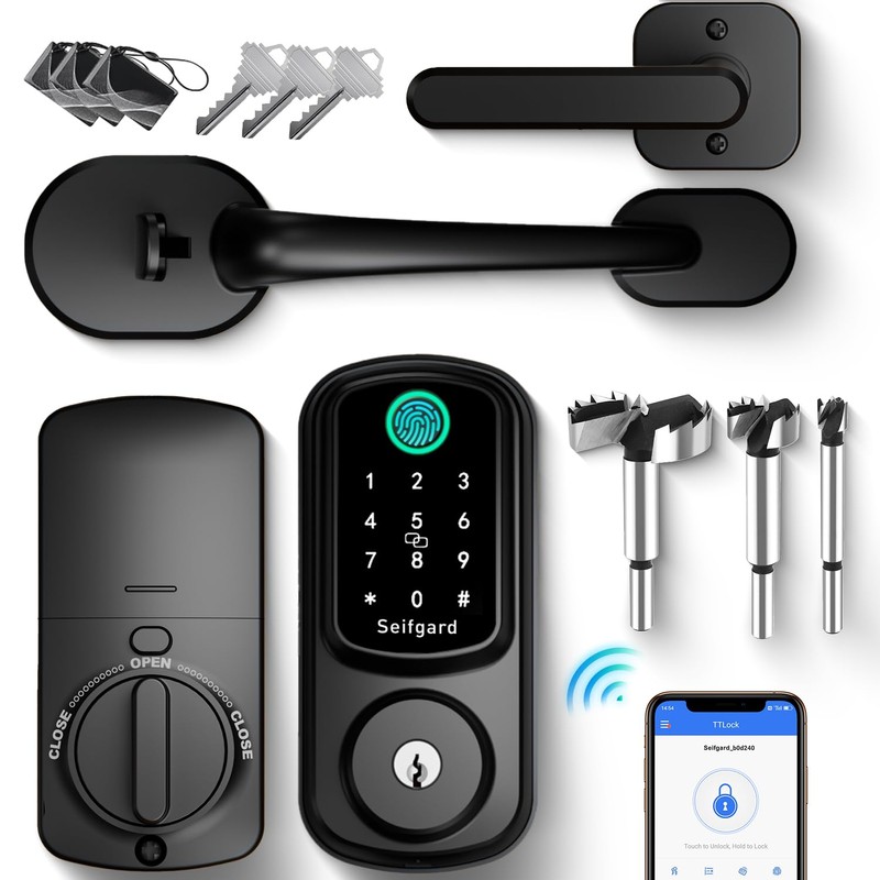 - 【Effortless App Control】:Seifgard Smart Door Lock for Front Door paired with WiFi Gateway ( Sold Separately), you can lock/unlock your keypad smart deadbolt lock anywhere anytime with TTlock app control, set up codes remotely, and check real-time access logs. even when you're away. With the auto-lock feature, your home's security is always maintained effortlessly.