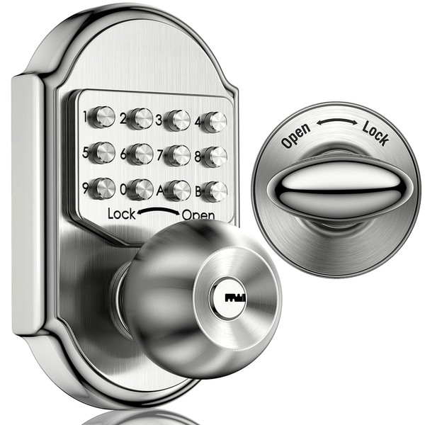 - 🔒 EASY TO USE: Lock the door by turning the knob left or using the key, and unlock with the passcode or key, for added convenience. The lock also comes with a reversible handle for easy installation on either side of the door. The lock does not automatically lock, which can be a pro or con depending on your needs