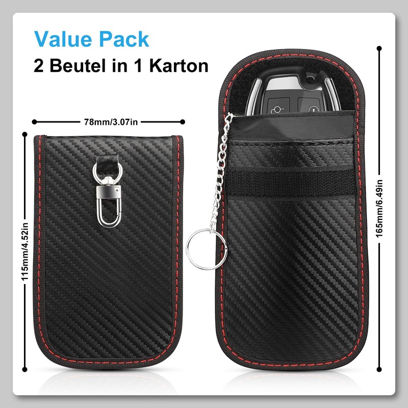 - Perfect Protection The use of RFID protection material prevents thieves from amplifying the signal of your car key. Even if the key is in the bag next to the door handle, the car cannot be opened, ensuring the safety of your property