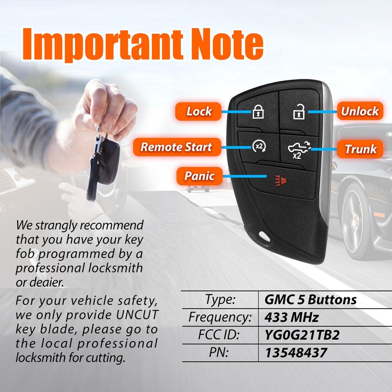 - 1 Pack Product: Part Number:13548440 FCC ID: YG0G21TB2, fits for 2021 - 2024 GMC.For full complete list, please check our product description