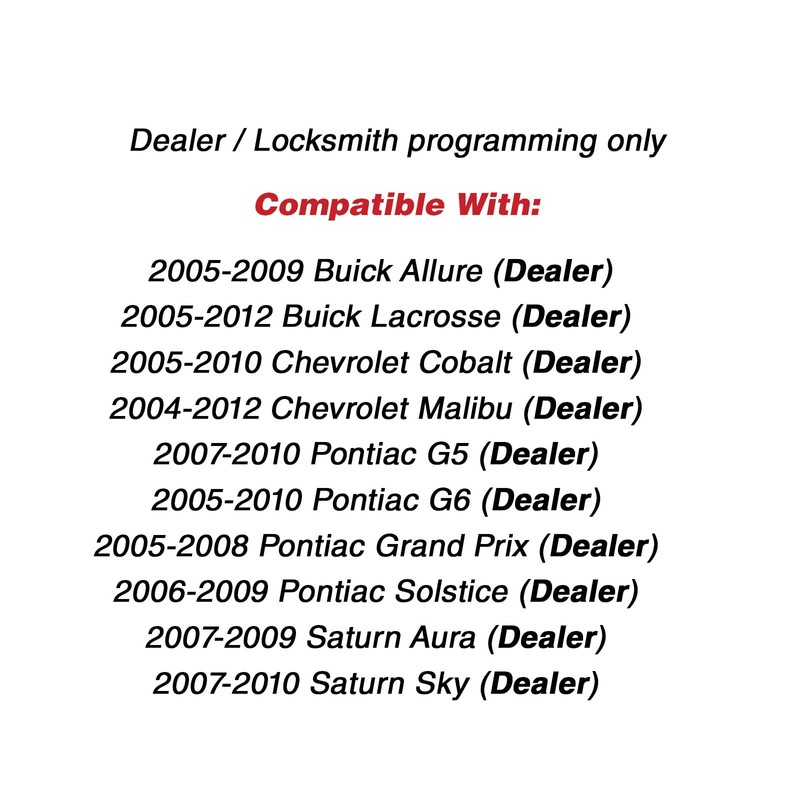 - Mandos a distancia llegará listo para programa a su vehículo por un distribuidor o un Automotive Locksmith.
