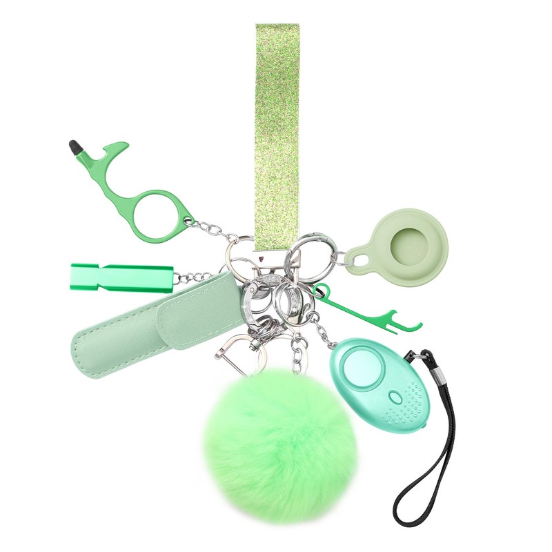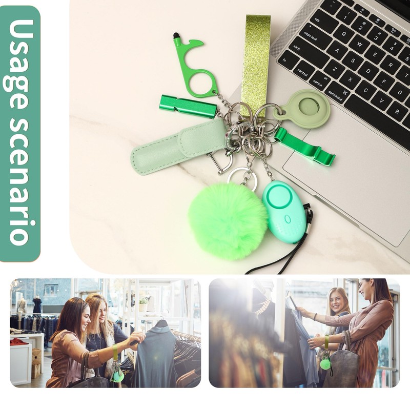 Keymate Safety Keychain Set for Women, with Personal Alarm,Gifts for Women,9 Pcs Keychain Set (green)