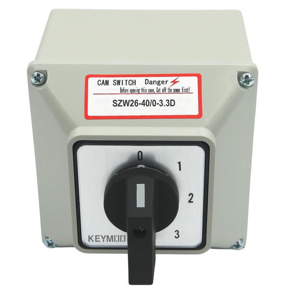 KEYMOO 40A Changeover Switch with Exterior Box, 4 Positions 3 Poles, Universal Selector Switch, Cam Switch Box IP65