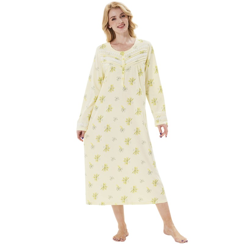 - Elegant Design: The elegant nightwear features long-sleeve with round neck and button placket. The casual loose comfy fit fit nightdress keeps you comfortable through the night. Non-see-through, not clingy: It is comfortable to wear this loungewear around home and not worry about answering the door.