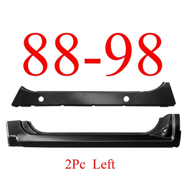 KEYPART 88-98 Chevy GMC LEFT 2Pc Extended Rocker & Inner Rocker Panel, Black, Alloy Steel, Left Lower, Truck