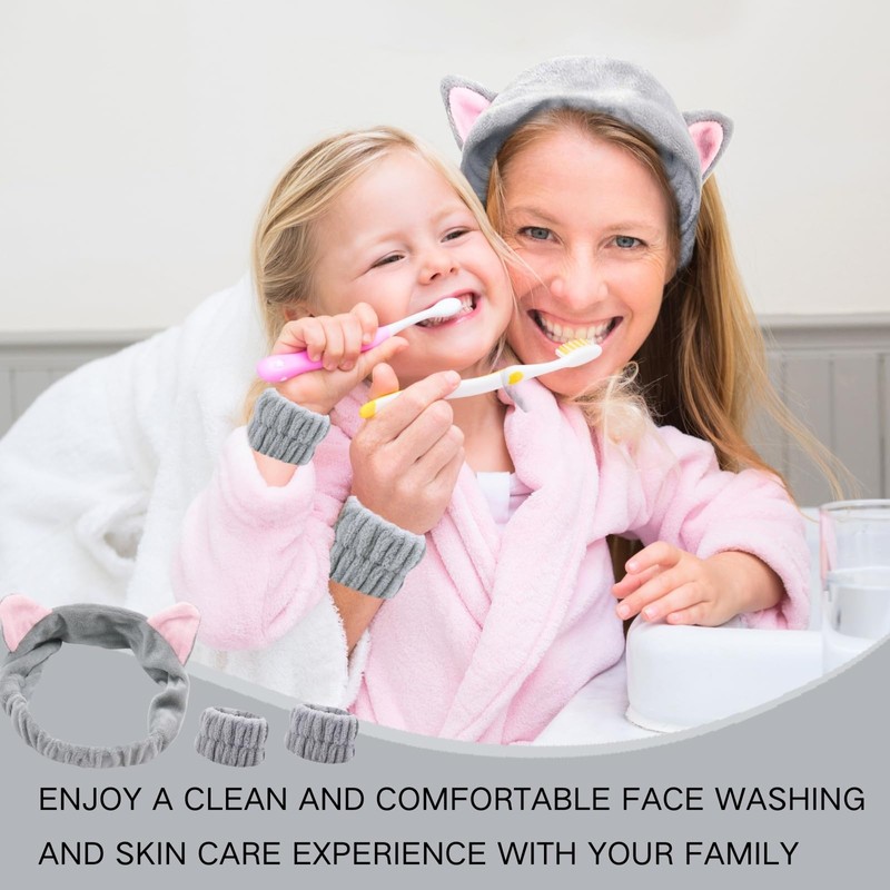 KEYRI 3 Pieces Cat Ear Skincare Headband and Wristbands for Facial Care Makeup and Washing Face Compatible with Girls and Women
