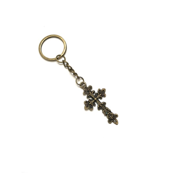 - This bronze plated keyring features a stunning gothic style cross design, perfect for adding a touch of elegance to your keys. The split ring ensures it can be attached to your keys.