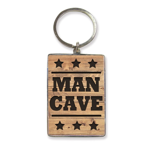 Keys To The Man Cave Metallic Keyring - Gift Idea