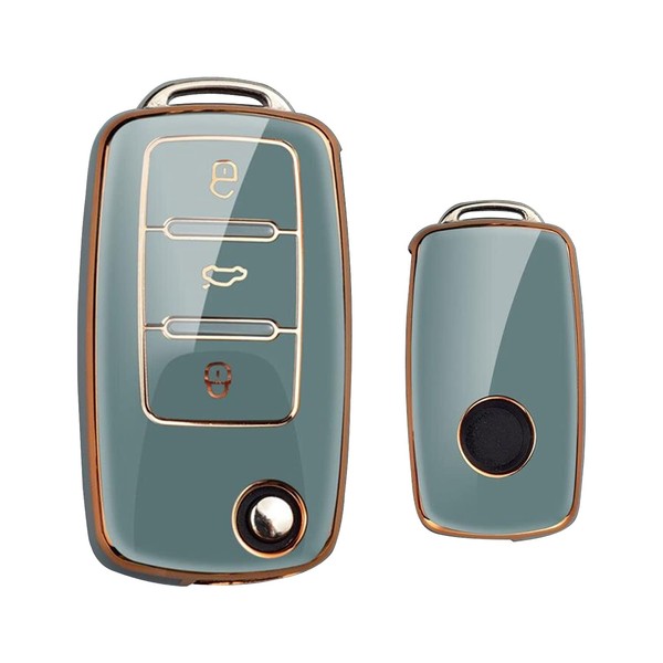KEYSCOVER Key Case for VW, VW Golf Key Case Cover - Soft TPU 3 Buttons Car Key Case for Volkswagen, Skoda, Seat, Polo, Golf, Passat, Perfect Fit and Durable (Grey)