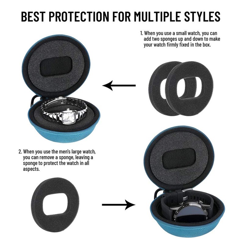 - Pack of 2 sponge watch storage case: In the watch case, we provide two removable replacement sponges. If your watch is small, please use two sponges so that your watch does not wobble in the case. If your watch is slightly larger, such as For example, the Apple Watch, you can simply store a sponge so that it does not become too tight.