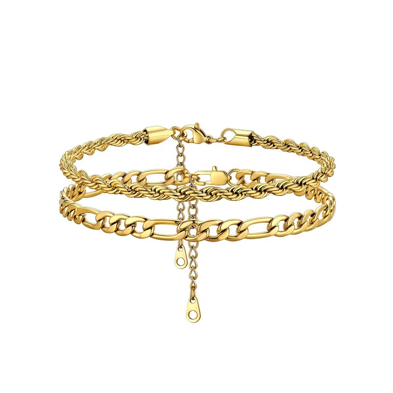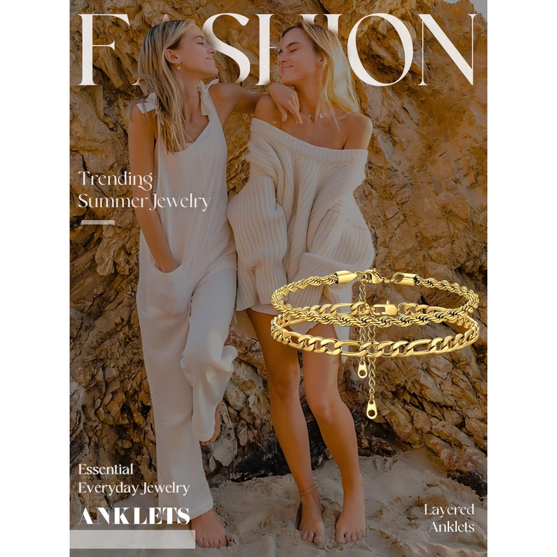 - 2PCS Anklets Sets for this Summer! The anklets are crafted on a dainty cuban chain and figaro chain anklet. Rock this anklets with chunky sneakers or summer sandals for a trendy look.
