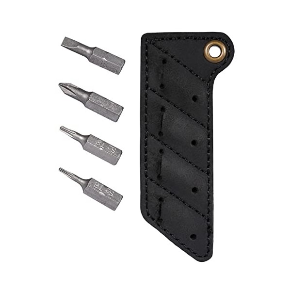 - ✔4 GROOVES - The Bit Holster groove fits single sided 1/4” hex shank screw bits, they are manufactured for a firm fit and tightly wrap the Screw Bits; Just pick 4 of the Screw Kits that you use most frequently and tuck them into the leather sheath, you can be well-equipped no matter where you go
