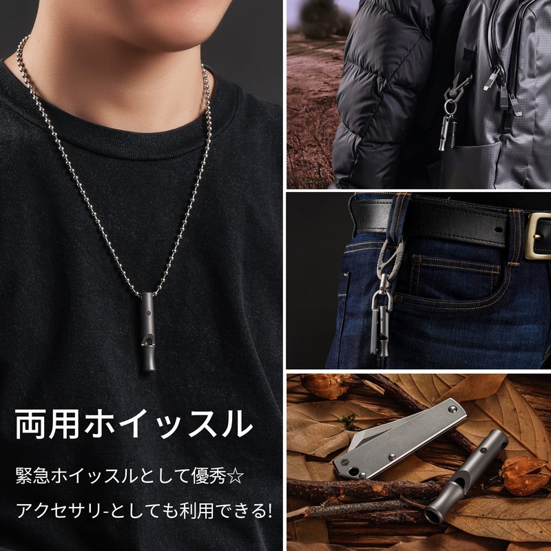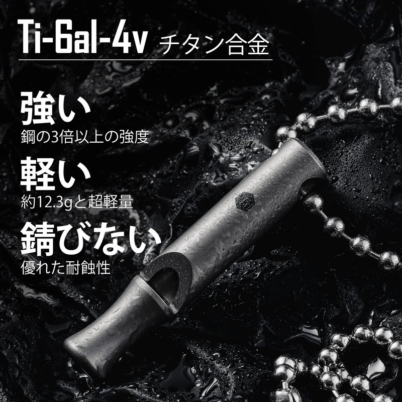 - Titanium Whistle S: The body of the whistle is made of titanium, so it is both durable and lightweight, and does not have a metallic odor. Corrosion and rust resistant, eco-friendly, harmless to your body. Allergy free, no worries