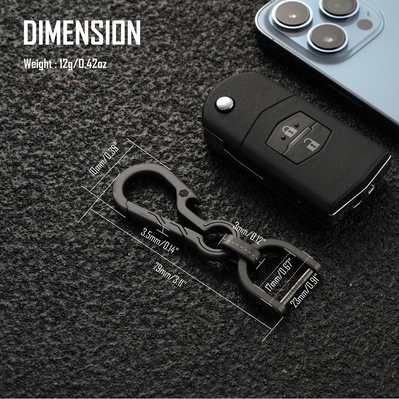 - 【𝐔𝐋𝐓𝐑𝐀𝐋𝐈𝐆𝐇𝐓】 Total weight 0.42oz, less burden in daily life; This multifunctional key ring holder easy attach to pants loop, bag, backpack, wallet or fit in pocket.