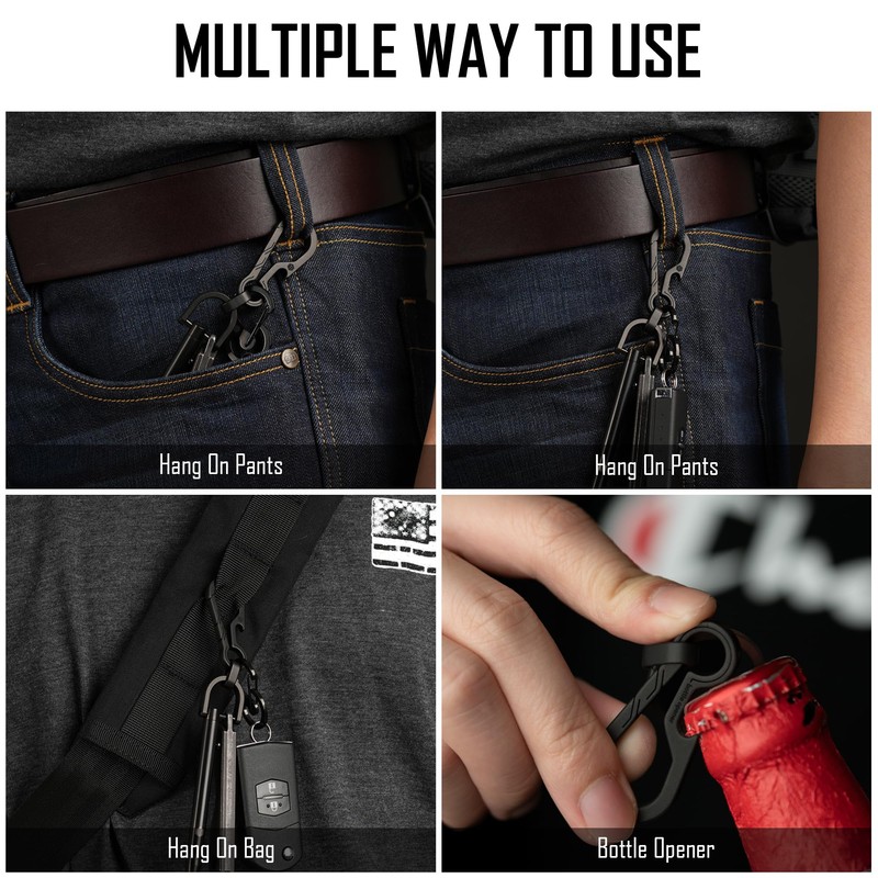 - 【𝟐 𝐢𝐧 𝟏】 In addition to the traditional keychain function, this quickdarw carabiner keychain also features a bottle opener function, use the side of carabiner to open the beer, soft drinks, soda water and more, great for your everyday carry, ensures that you can enjoy the convenience of opening bottles even outdoors.