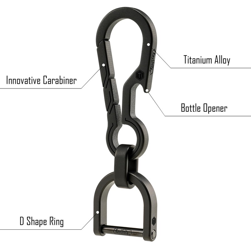 KeyUnity KM01 Titanium EDC Keychain Clip with Bottle Opener, Quick Release Carabiner Key Ring Holder for Men, KM15BK, Medium