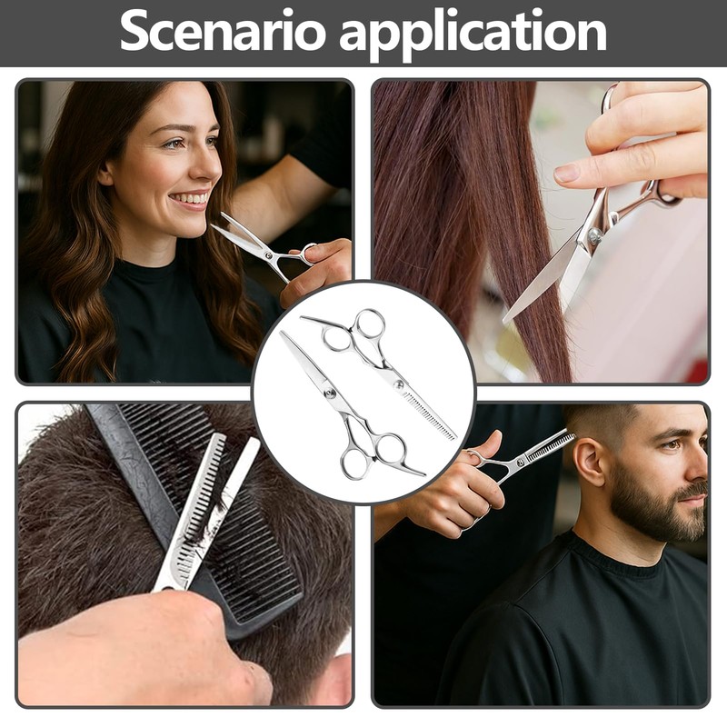 • 【Schere haare】he one-piece design of the hairdressing scissors blade has clear lines and good stability and ensures that it stays sharp and smooth no matter how often you use it. It can easily cut dry and wet hair.