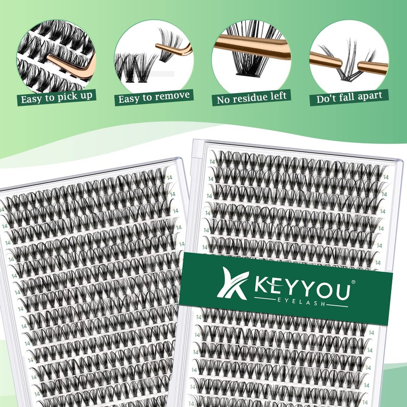 - Soft&Comfortable:KEYYOU lash clusters are made of high-quality imported materials which is super soft,lightweight and more comfortable to wear.300pcs in one tray, contains lashes of different lengths to better meet your needs and save time and money.